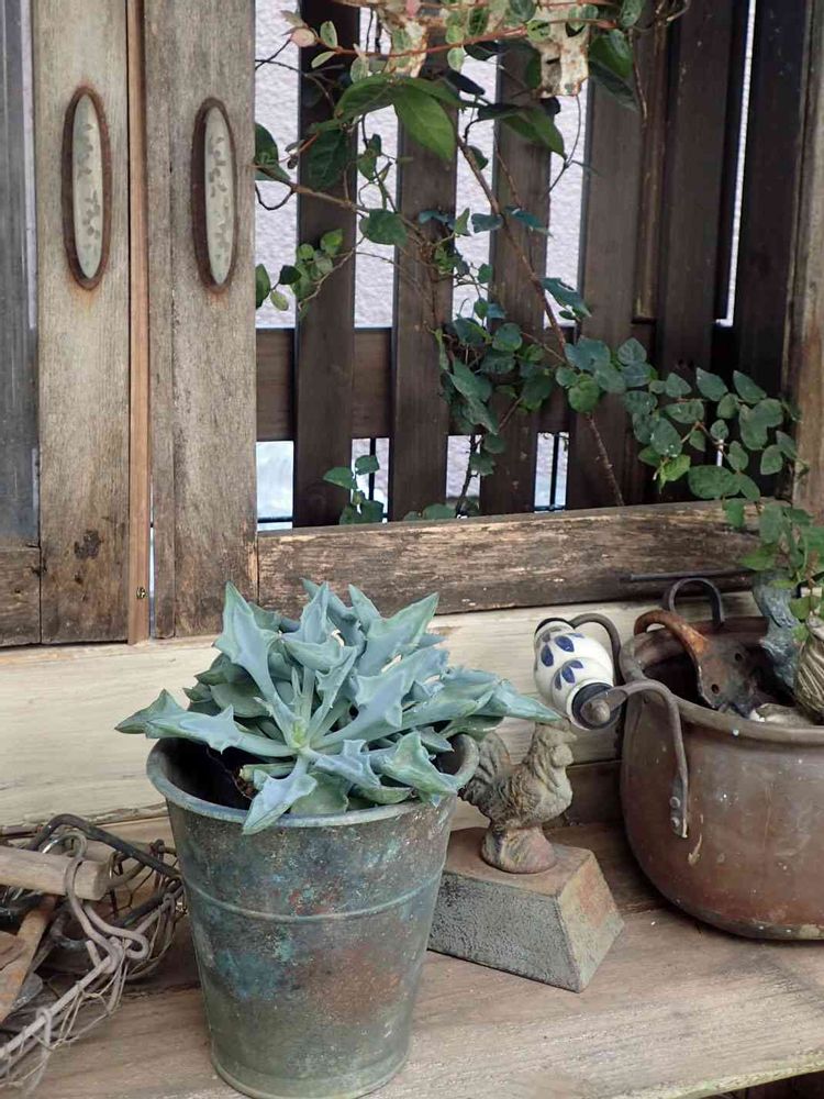 雑貨は外に置くとどんどん錆びていきますが、錆さびも好きです。
