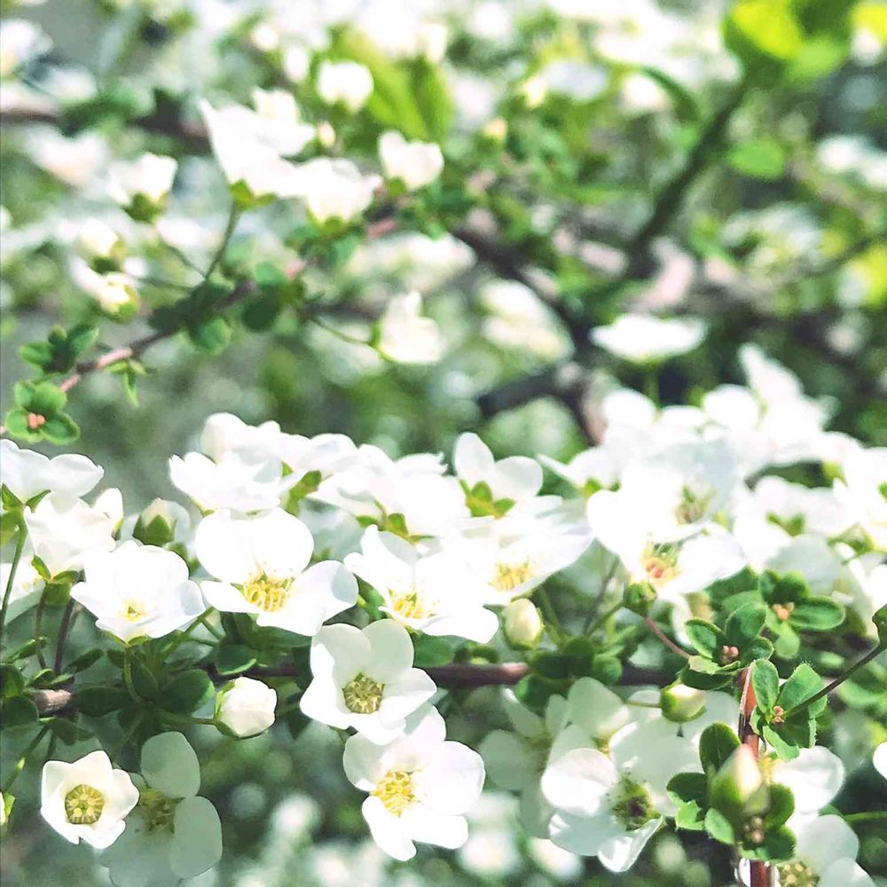 再開に相応しく真っ白のユキヤナギ💕 柔らかく垂れて遠くから見ても一面に咲く姿は素敵ですね( ¨̮ )💕