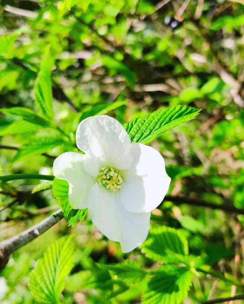 背の高い木で、枝から小さい白い花がちらほら咲いてました😆
