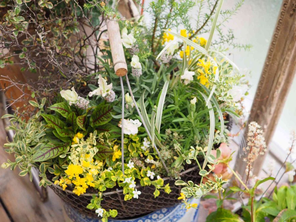 花籠のような、盛りだくさんの寄せ植えですね、素敵です💕