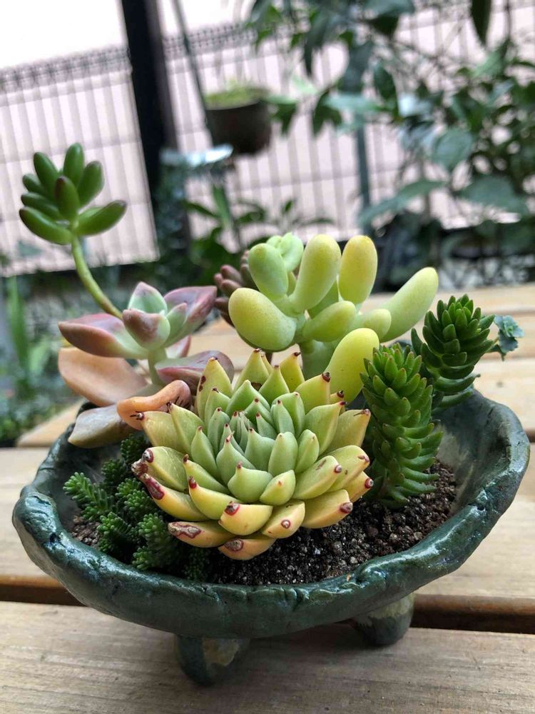 器の和の感じを生かした寄せ植え💚