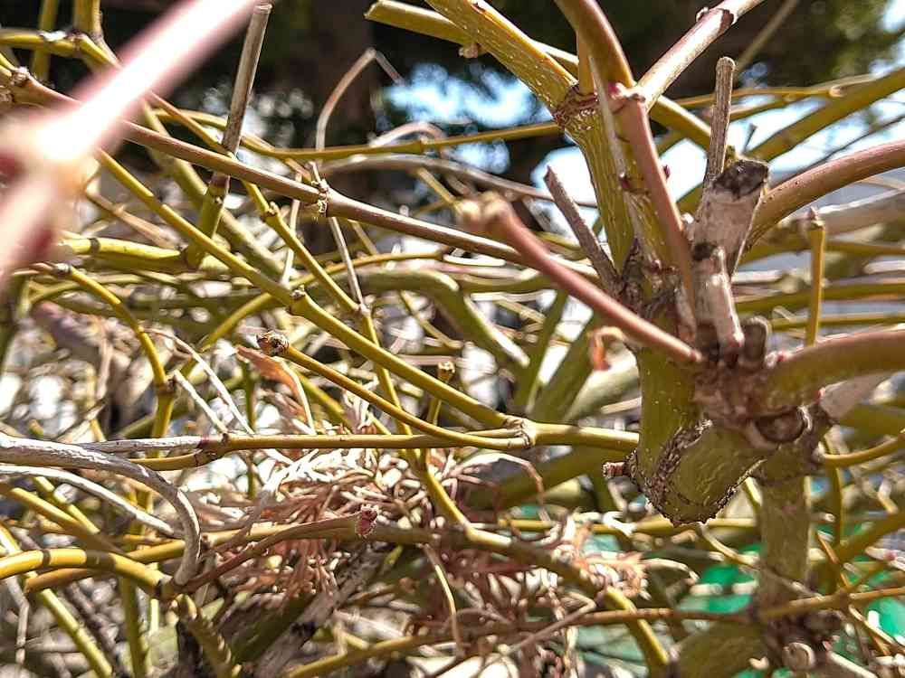 ポカポカ陽気にさそわれて、庭の枝垂れ紅葉の枝をチョッキンゝ。