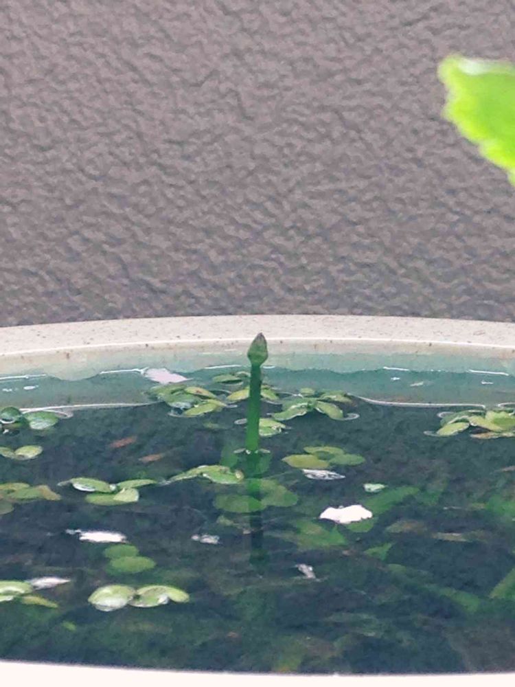 朝見つけた花芽!ナガバオモダカの花です。肥料は煮干し🐟一本丸ごと水中の鉢にズブッと差し込みます。
