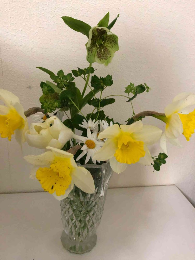 綺麗ですね〜💕水仙をマーガレットやクリロ-さん達と一緒に飾られたんですね🤗