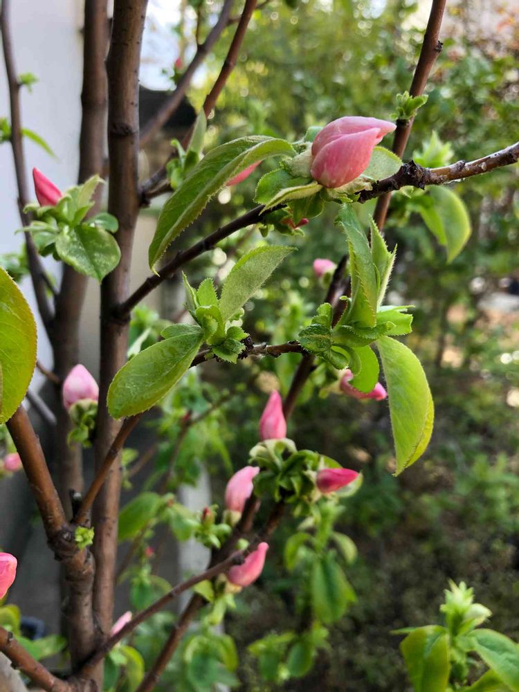 カリンの花がもうすぐ咲きそうです。去年、花が終わってから植えたので初めて花を見るんです❣️楽しみです。