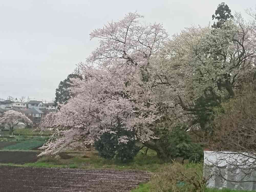 私有地の畑の中の大きな桜です。なので、近くまでは行けないんですが😅。毎年、一度も剪定されたことがないんだろうなあと思わせる見事な姿を見せてくれます。🐶と無人販売の野菜を買って帰り道🍀