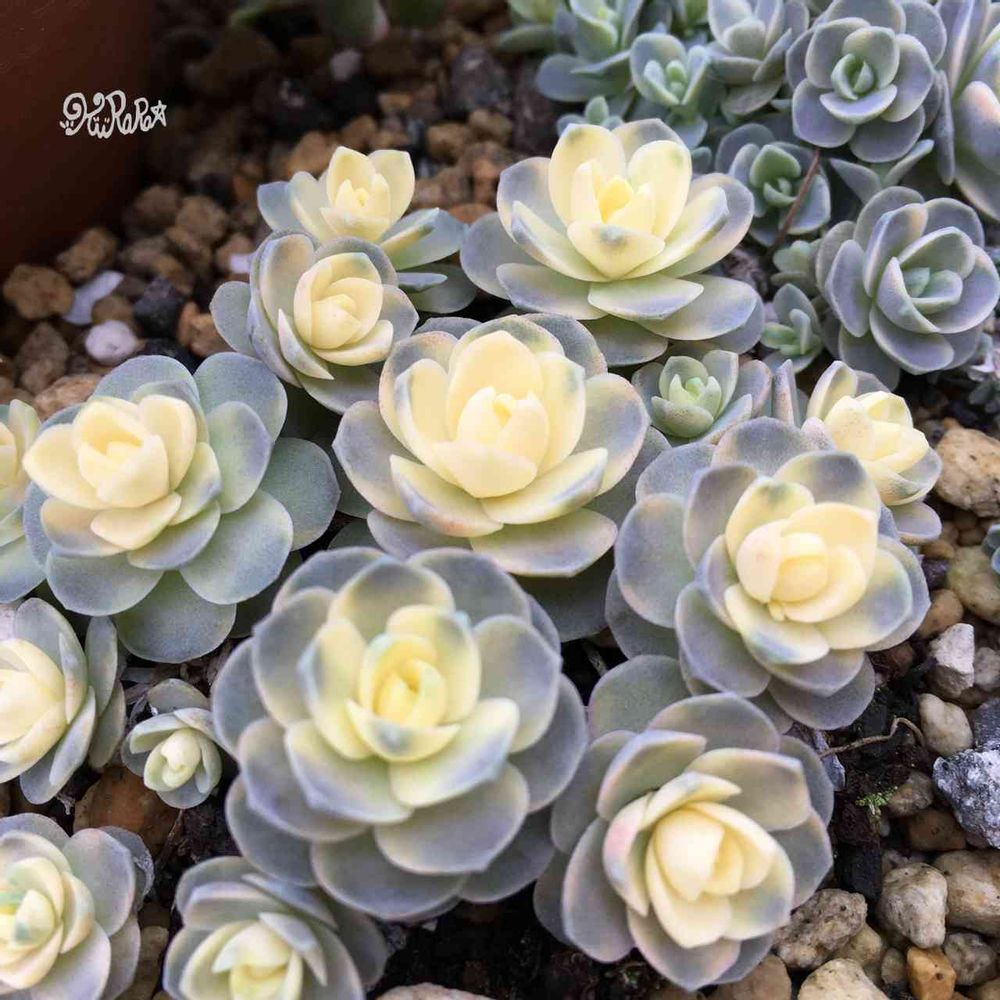 一応、錦で買ったんですけど、横にいる確かただの子持ち蓮華に斑が入りだして💦錦で買った奴がかなりクリーム色なんですよね😓かわいいからどっちでもいいのだけど、真実は知りたい😅