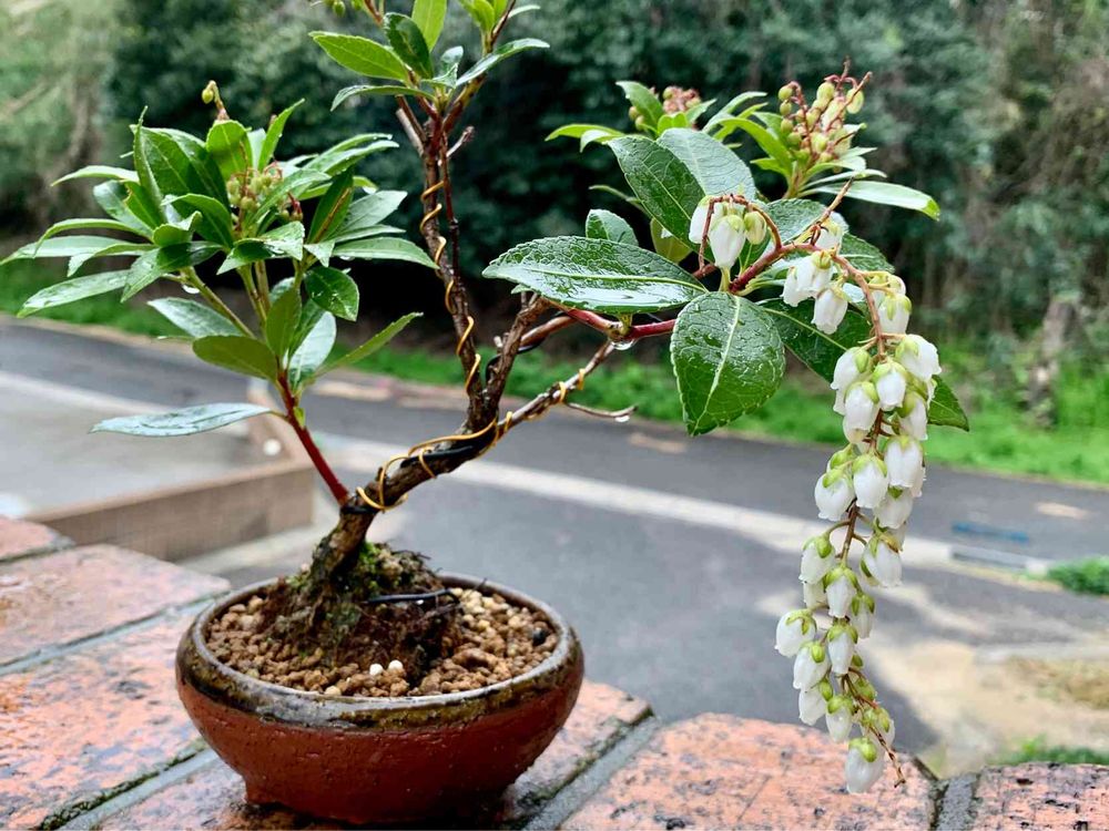 盆栽の馬酔木が焦らしに焦らしたあげく咲きました😅