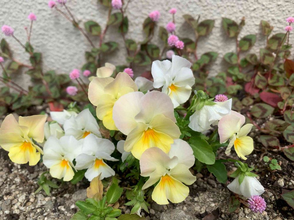何も考えず植えましたが後ろのピンクとのコラボ可愛くなりました〜🥰
