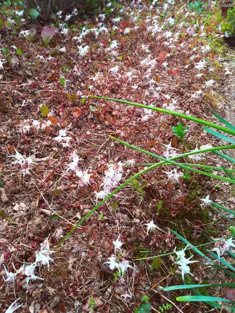 実際に見ると天の川の星々のようにイカリソウの花が浮かび上がって見えて、とても綺麗なんだけど、📷に撮るとなかなか見たままの感じに写らないですね。スマホのカメラじゃなくて、ちゃんとしたカメラを使えばもう少し伝わる📷が撮れるのかな🤔