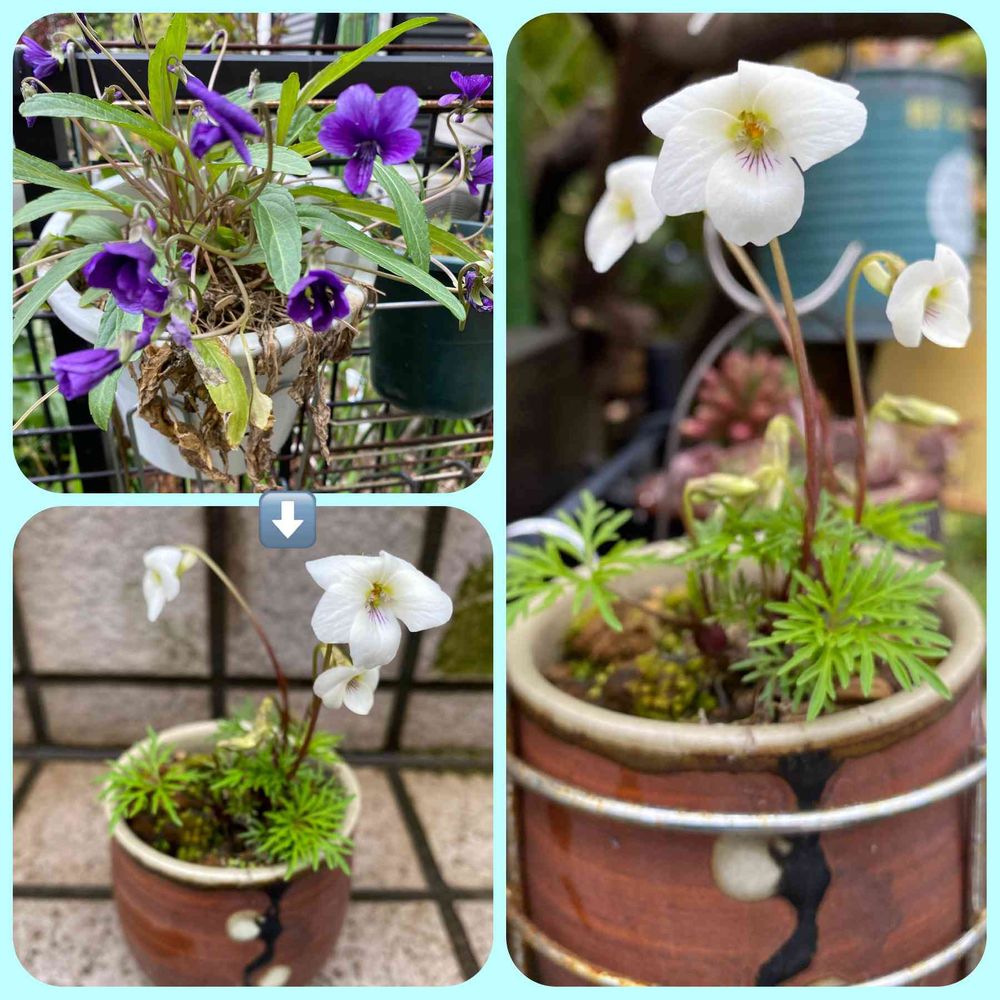 そしたら、お返しにと白いスミレをいただきました🤍しかも可愛い鉢ごと💕