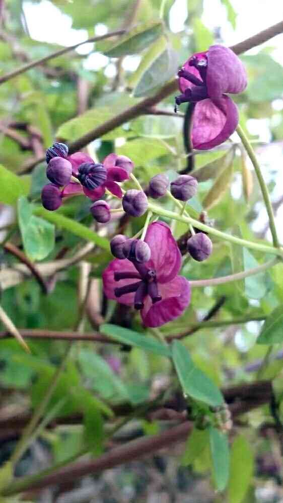 アケビの花はもっと白っぽい印象があったんですが、、スゴく紫でアケビっぽいですね✨