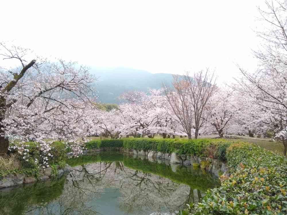 池に桜の木が写り