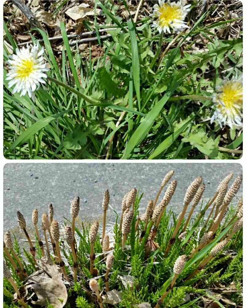 お出かけ先,白いタンポポ,つくしんぼの投稿画像