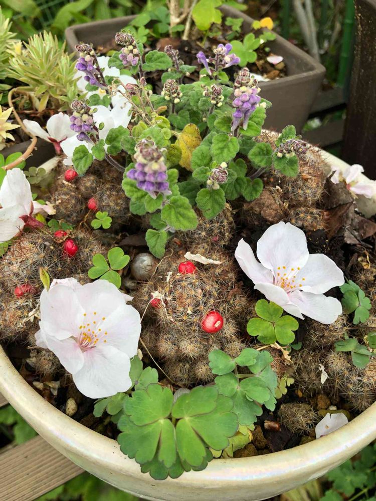 普通、絶対にタツナミソウとサボテン🌵の寄せ植えなんてしませんよね😆