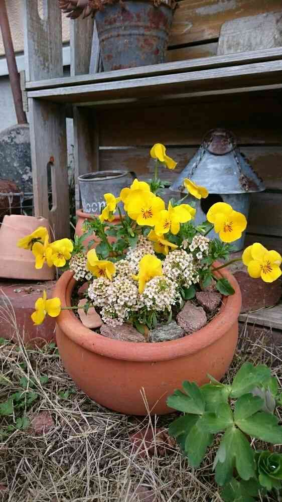 アリッサムとパンジーの組み合わせ、みごとです(๑・̑◡・̑๑)