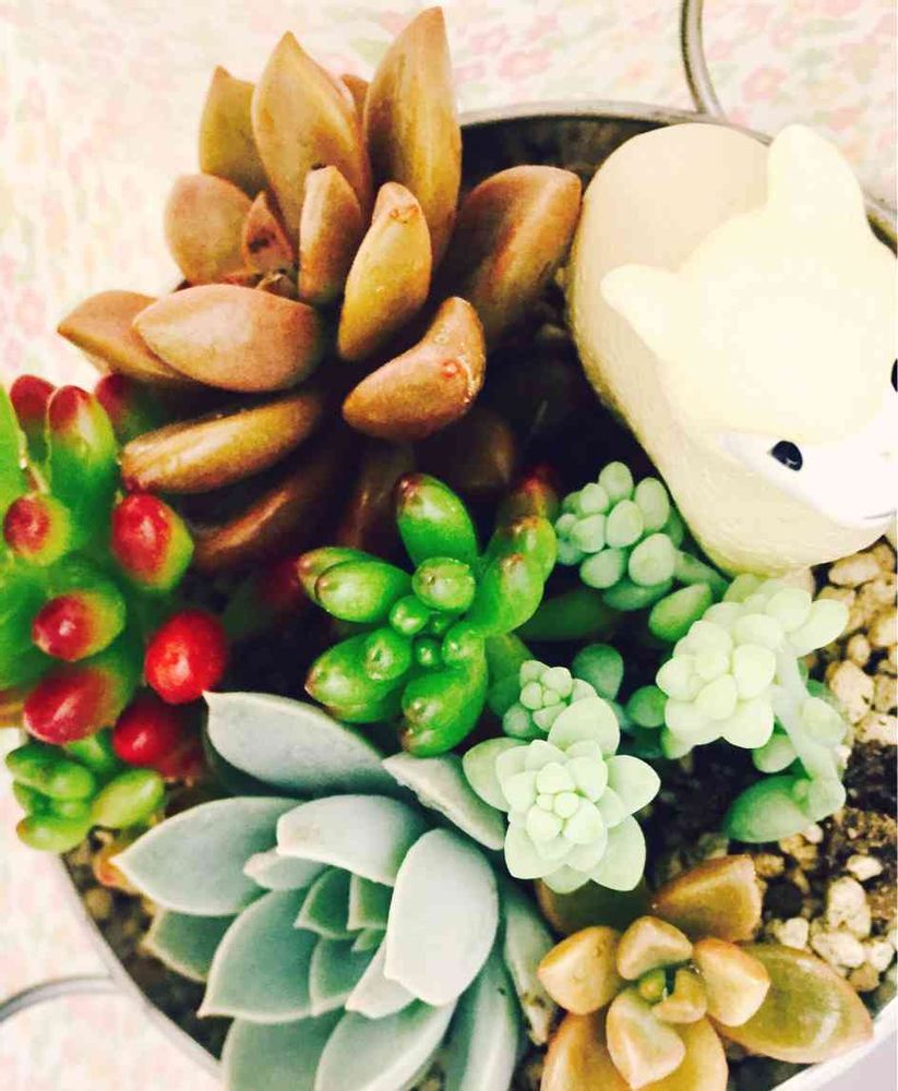 とっても恥ずかしいんですけど、初めての寄せ植え……(/ω\)(照)突如思い立ってあった物で作りました(//∇//)昨日投稿したウサギちゃんからも少しわけてもらいました🐰