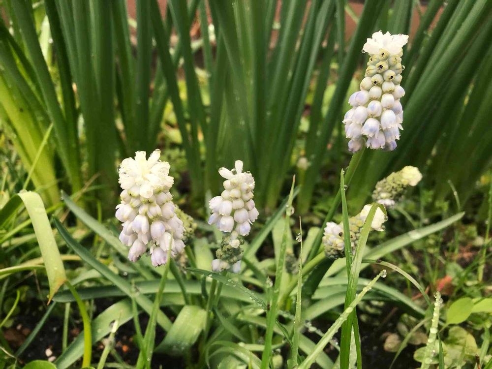 白色ムスカリ先日まで知りませんでした💦 皆さんの写真で知り紫色とは又違いますね👍