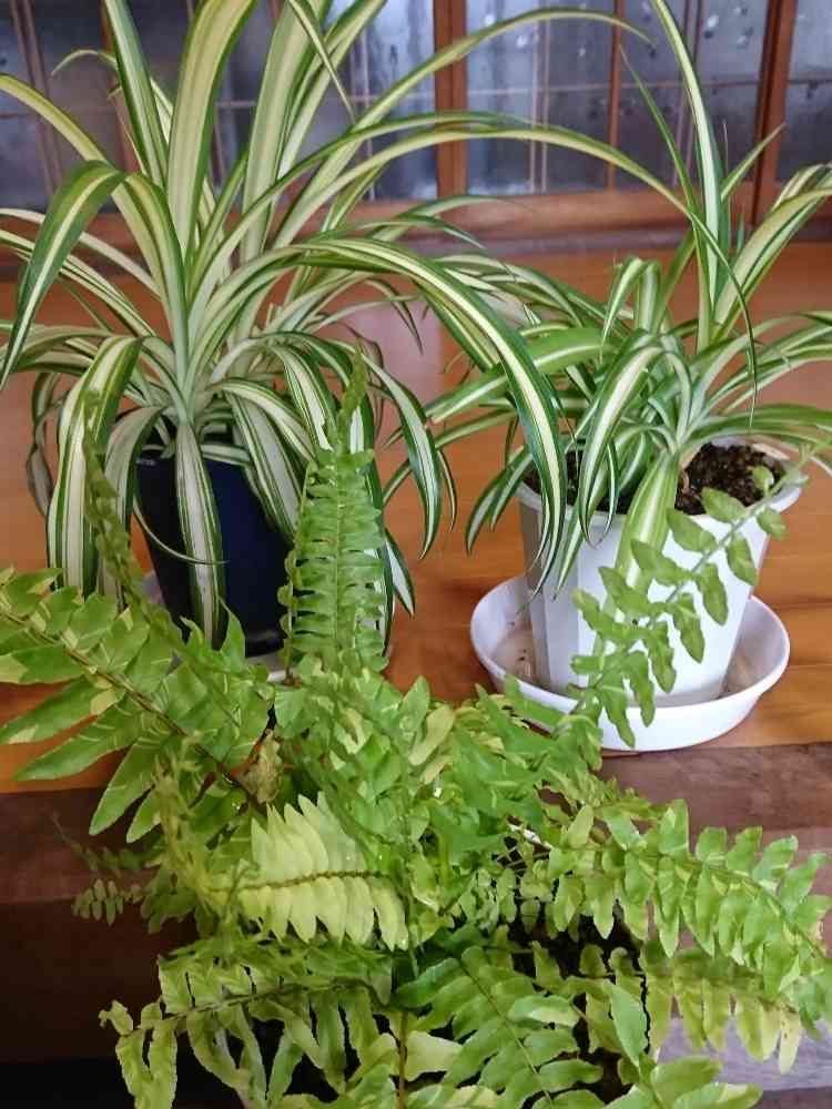 オリヅルランの斑入りのしなやかな葉は美しいですね💕
