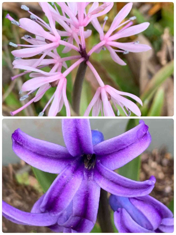 検索サイトで見比べた結果!!紫色のコはヒヤシンスで間違い無さそうです🙏