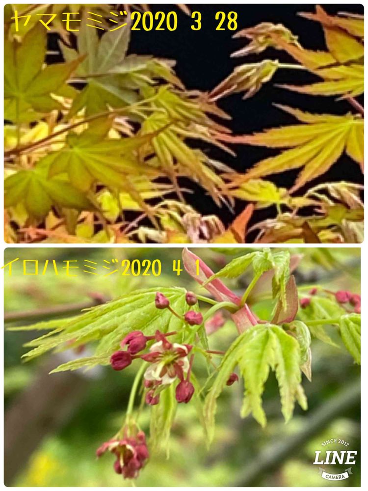 モミジの芽吹き葉と花