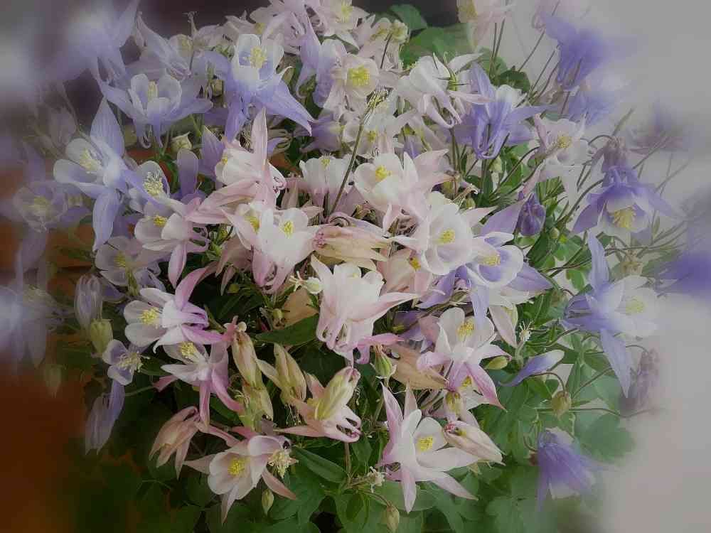 優しそうな花柄にも、これだけ咲き誇ると、華やかさが加わって素敵な🌼*・💜オダマキ💜・*🌼