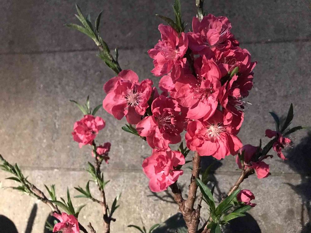 母が数年前に会社で食べた桃のタネを植えたもの。
