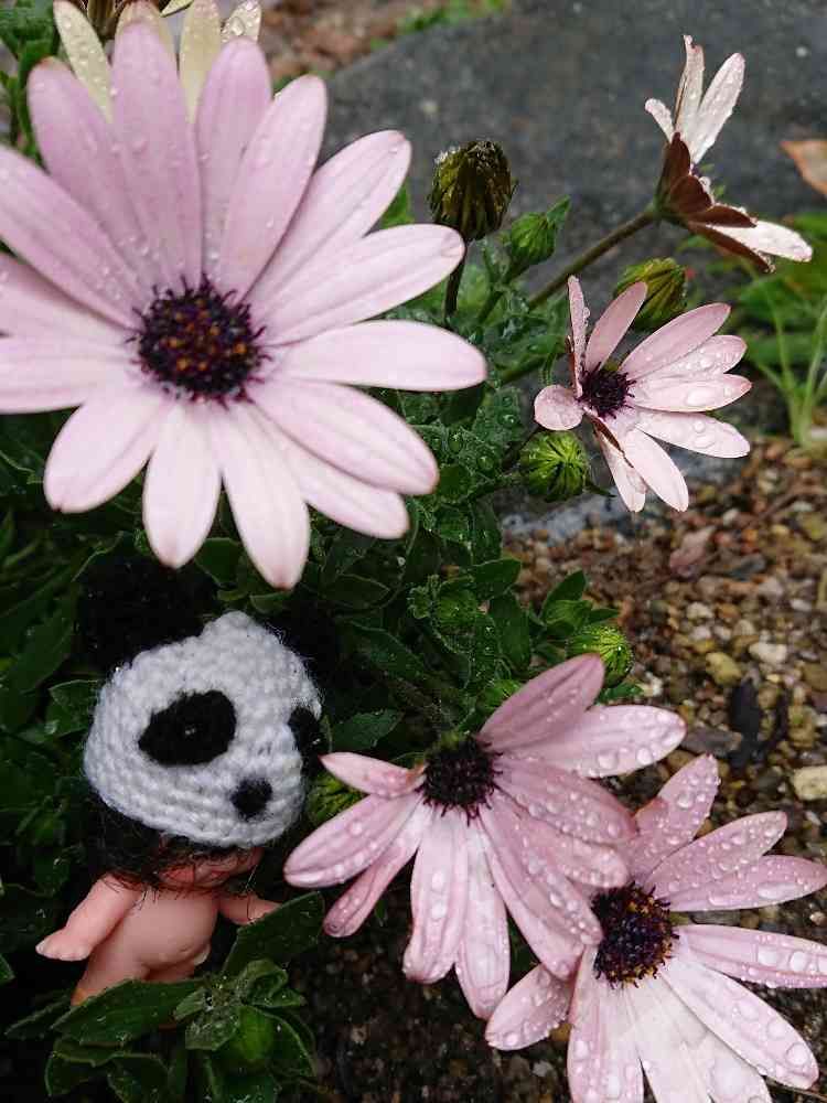 雨上がりの中、パンダキューピーチャンも、まだショックみたい😿