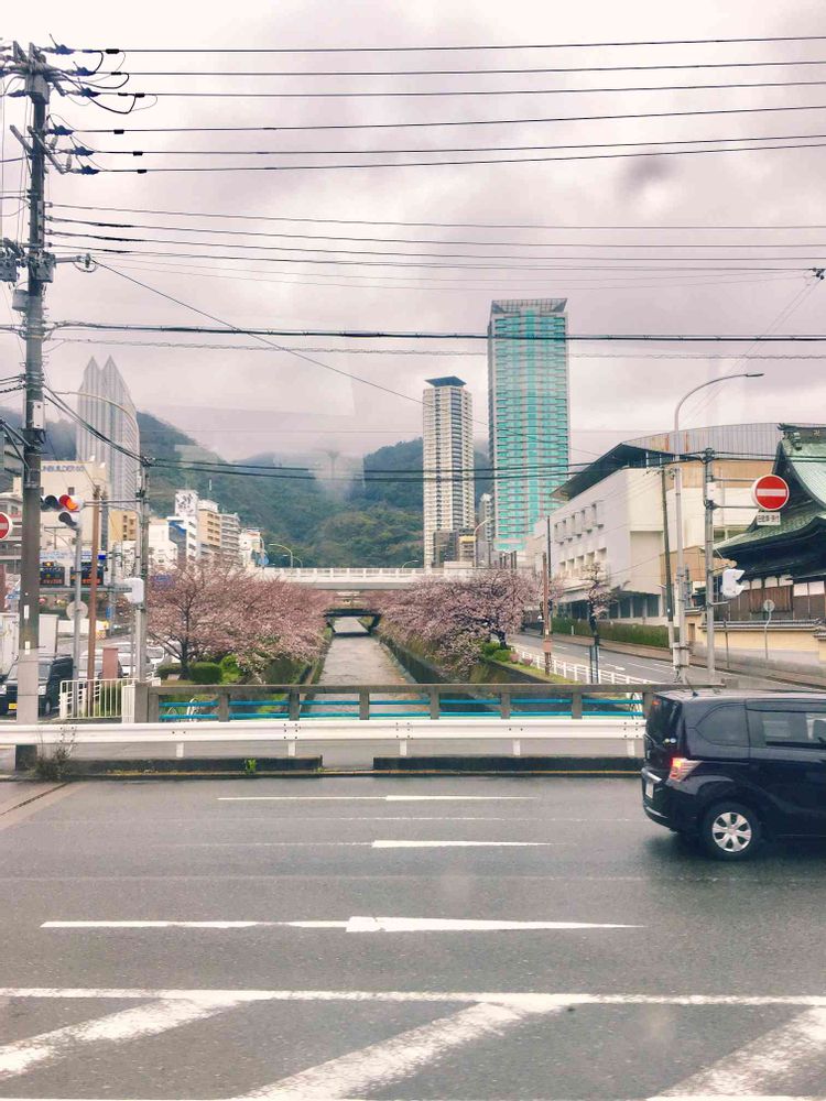 今朝の生田川沿いの桜並木です。バス🚌の窓から撮ったのでちょっと桜が遠いですね💦