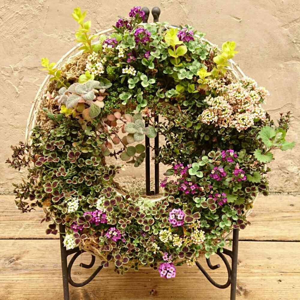 昨年はビオラやアリッサムで華やかに仕上げたけれど、今年はタイムやクローバーなどの葉もので長く楽しめるようにしてみました🌱💕