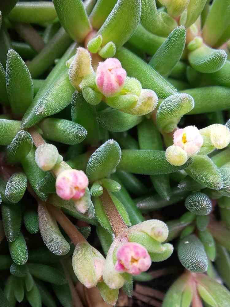 あともう少しで、咲きそうです。マツバギクこ葉ってズームで見るとツルツルじゃないんだ👀