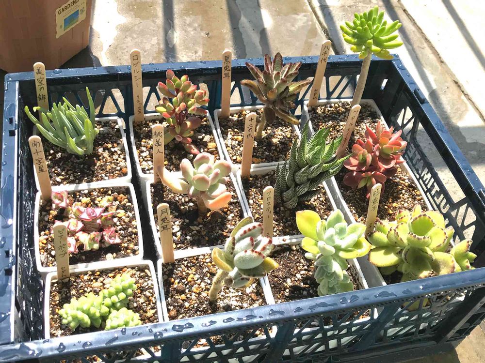 我が家の多肉なんだかんだ24種類半分は形が暴れないので寄せ植えに、暴れやすいのはコンテナに!