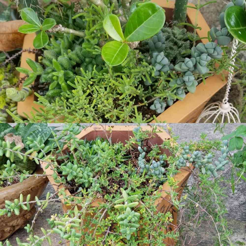 9月中旬に強風で棚が倒れてしまいました😭 折れたり葉が取れたりスカスカになった子達を カットしてまとめました 元気に成長しているので経過を記録したいと思います❗️