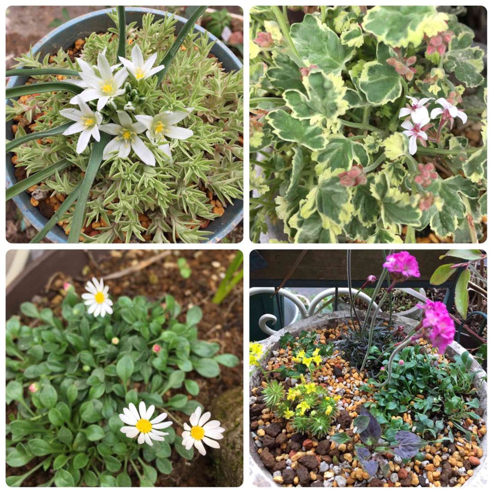 ペビリアンデージーは先日寄せ植えの中に植え込んだもので、やっとポツポツ咲き出しました〜(*´꒳`*)