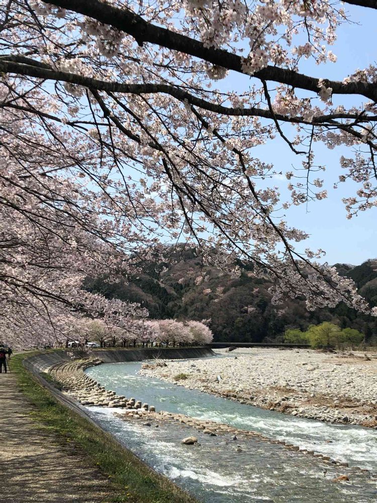 こちらの公園は、山の近くで景色がいいわりに混まないのです。桜並木が見事に続いているんですよ😍