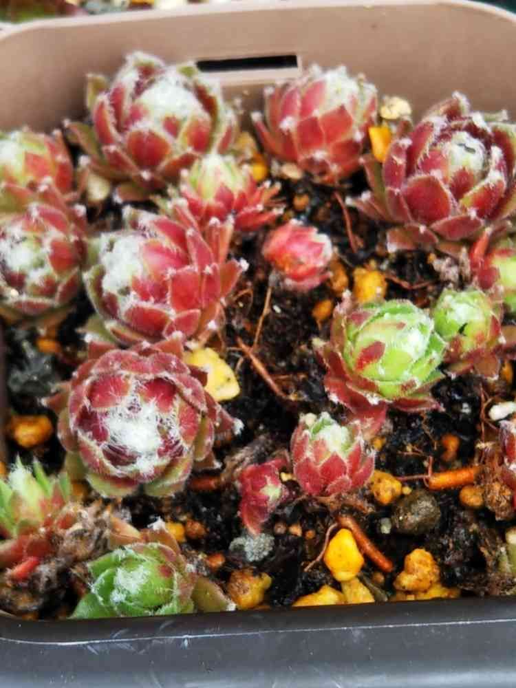 美味しそうな🍓…みたいなセンペルビウム・赤巻絹さんの子株ちゃん達。去年のお子様達です😊