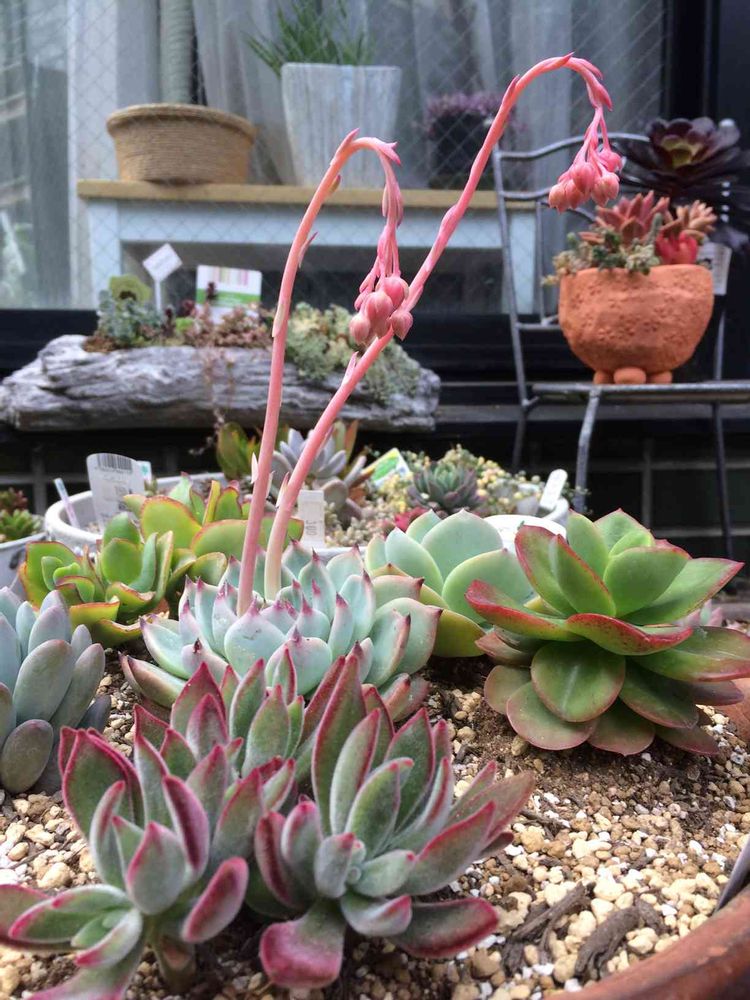 多肉さんの桃太郎さんは提灯を2個提げている様子😄手前のハムシーさんも1ヶ月で大分大きくなって美しさを増しました🌵