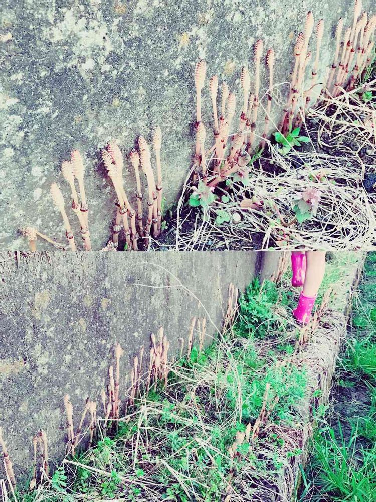 お散歩途中に見つけたお行儀よく整列してるつくしを。笑