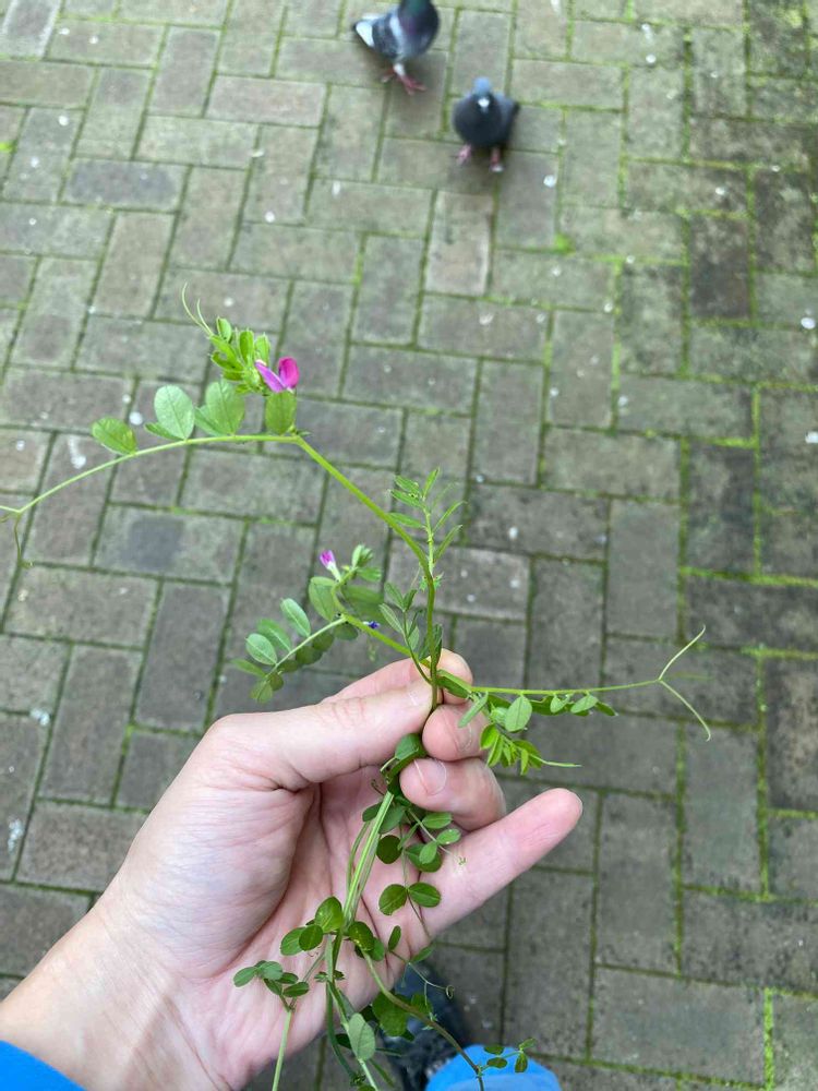 からすのえんどうの鞘の両端をちぎって種を取り笛にすると風と音が鳴って面白いよ