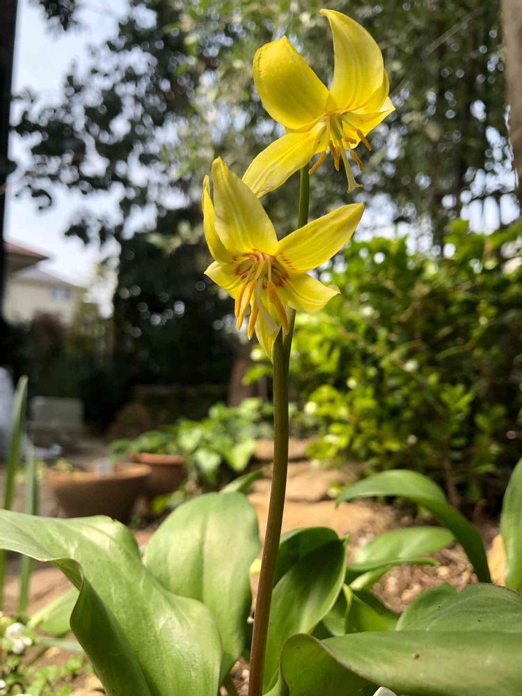 黄花カタクリは紫のカタクリと違って、葉っぱがチューリップの葉っぱのかたちに近いということも気が付きました。