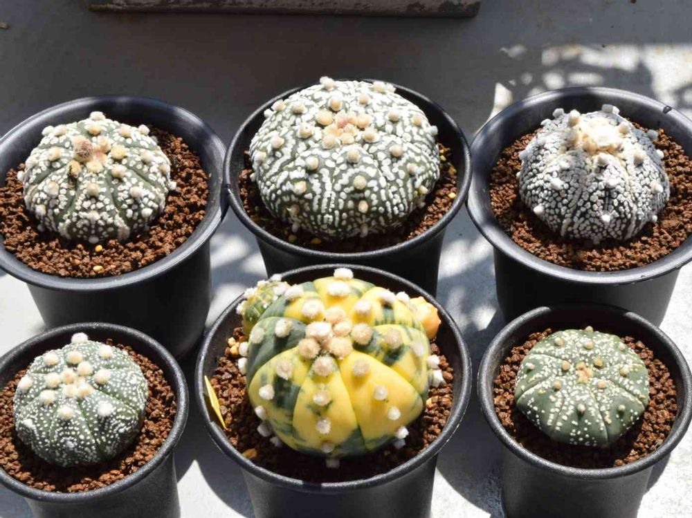 上段の左右のスーパー兜はお気に入りの鉢(プラ鉢ですが😅)に植え替えたので更に可愛くなりました(^^)