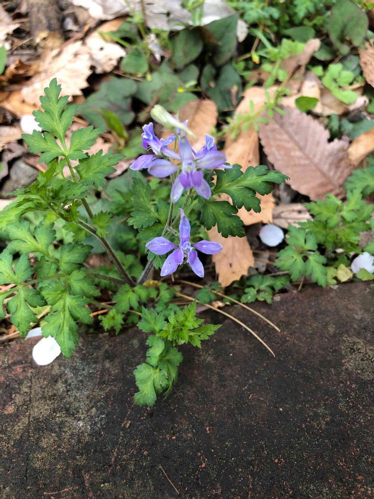 ムラサキケマン? と思ってましたが違いました。なんでしょう? 武蔵野の森の中です。
