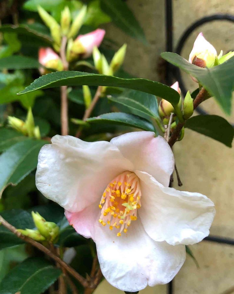 No.713 散歩道の植物とお散歩ちゃん12月①2025/1218白侘助、ビワ、オキザリスバーシカラー・・・