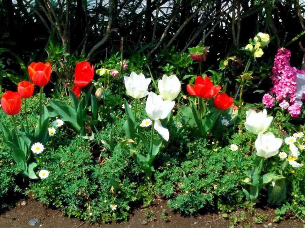 病院の帰り道、金町駅前の花壇の、チューリップ🌷です。