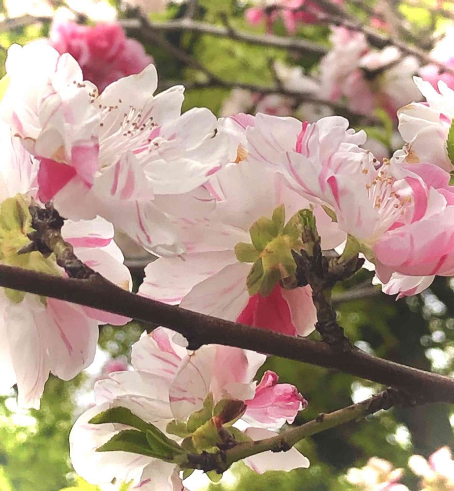 ピンク色だけのお花や白にピンクが入っているお花が1本の木から咲くのですごいなぁ😳って思ってゲンペイモモのファンになりました。😄