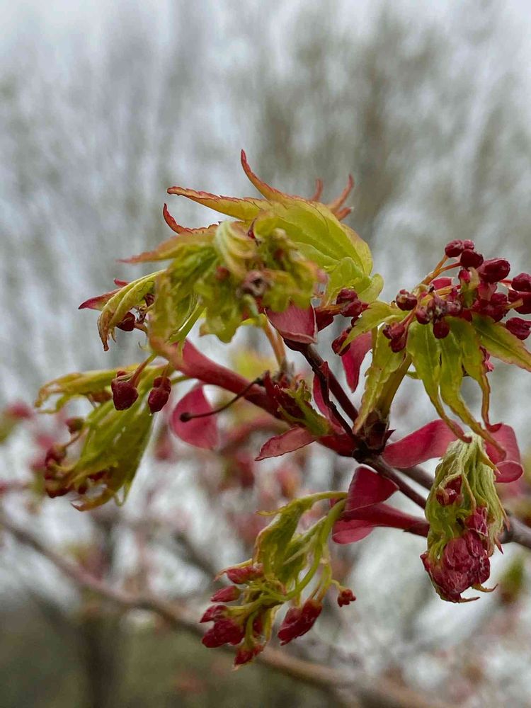 趣味の演芸で、春の紅葉という特集してたので、我が家のもみじ見に出たら、今まで気づかなかったけど、かんざしのような可愛い花🌸