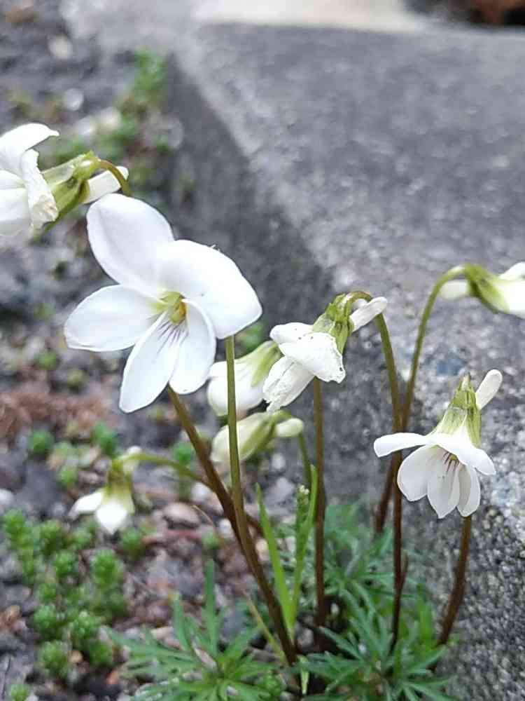 この道を通る度、この純白のスミレ✨に魅せられていました。 だれが育てているわけでもなく、隙間から毎年、出てきてくれる…大好きな花です(o^-^)