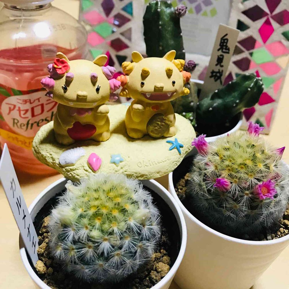 先日お迎えした頬擦りしても痛くないサボちゃん🌵、2号、3号カルメナエ、蕾がいっぱい♪