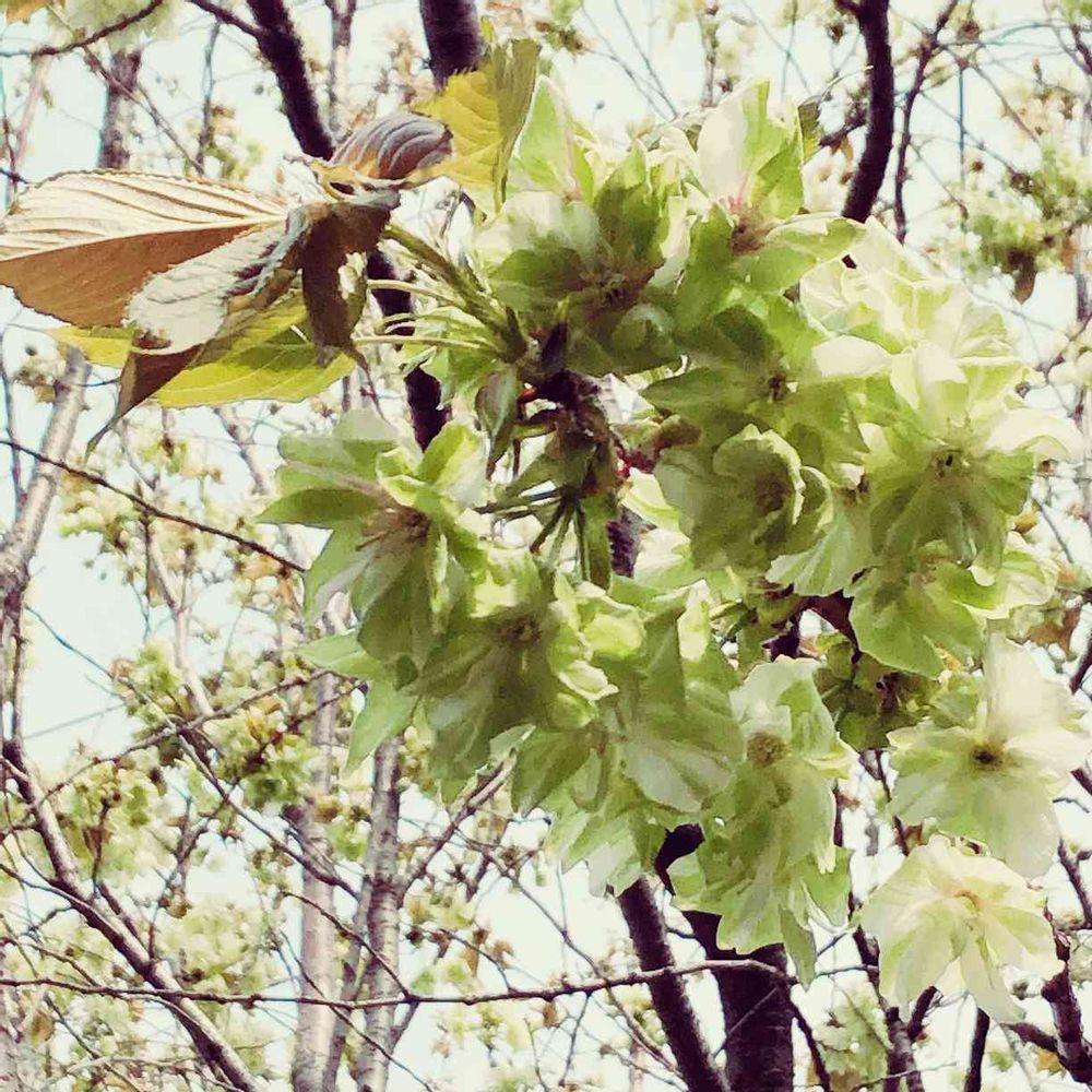 淡いピンクの八重桜の次は、なんと薄い緑色の桜です😲