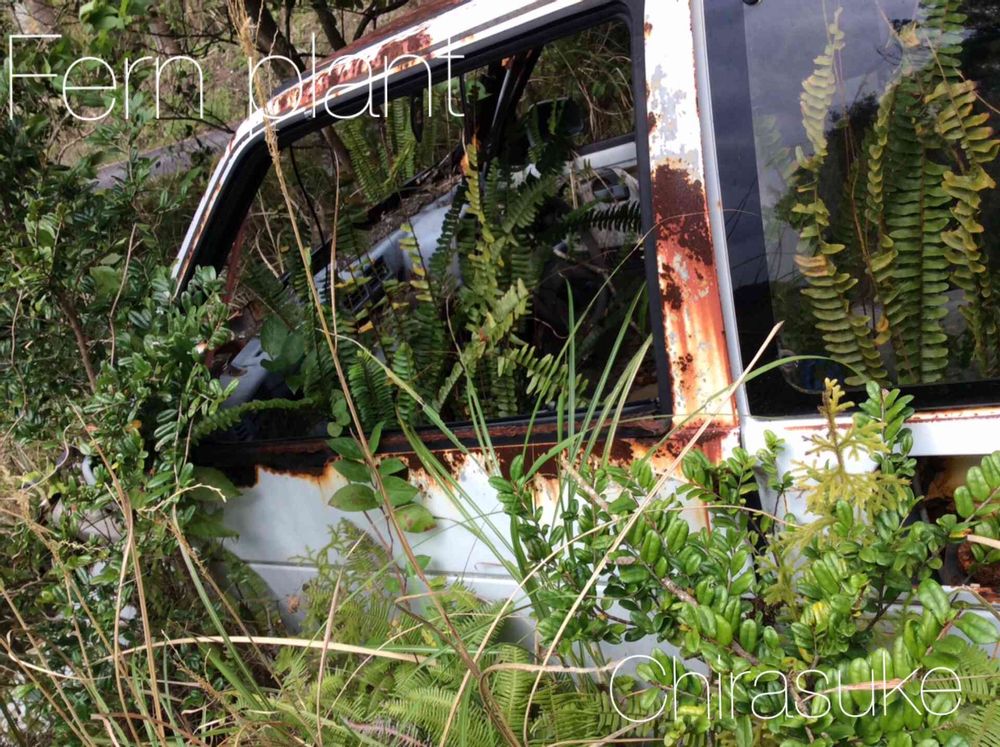 屋久島のとある場所に不法投棄された車の中で育つシダ植物車内がテラリュウム化してシートの上で着生してる( ̄◇ ̄;)